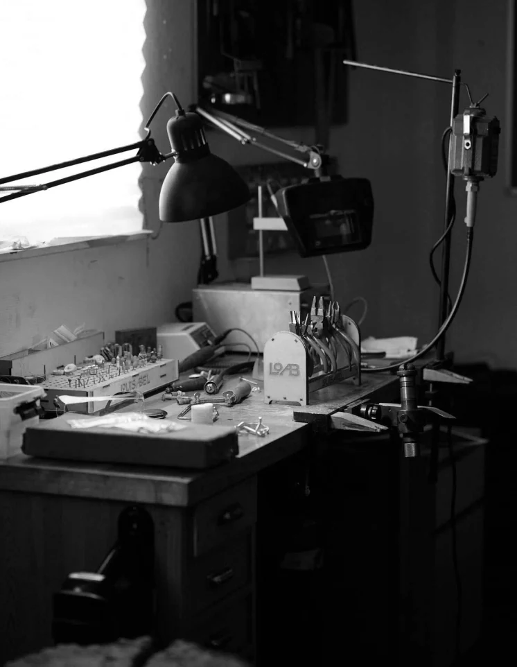 With a know-how in manufacturing, Jimmy rented a small workshop space in his hometown, Borås, to start experimenting with the design of precious metals. Having no experience in traditional jewelry design resulted in a different approach to the craft, often exploring innovative methods and processes to bring the pieces to life. His technical background, combined with a fascination for irregular curves and textures, translates into unconstrained jewelry and objects that express emotion, becoming personal and meaningful creations.