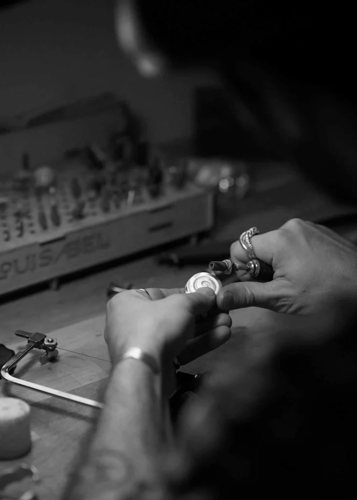 Every Louis Abel piece is shipped with a polishing cloth. When in need of touch-up, use the polishing cloth or any soft, lint-free cotton cloth. Avoid using paper towels or tissues as they can scratch the jewelry.