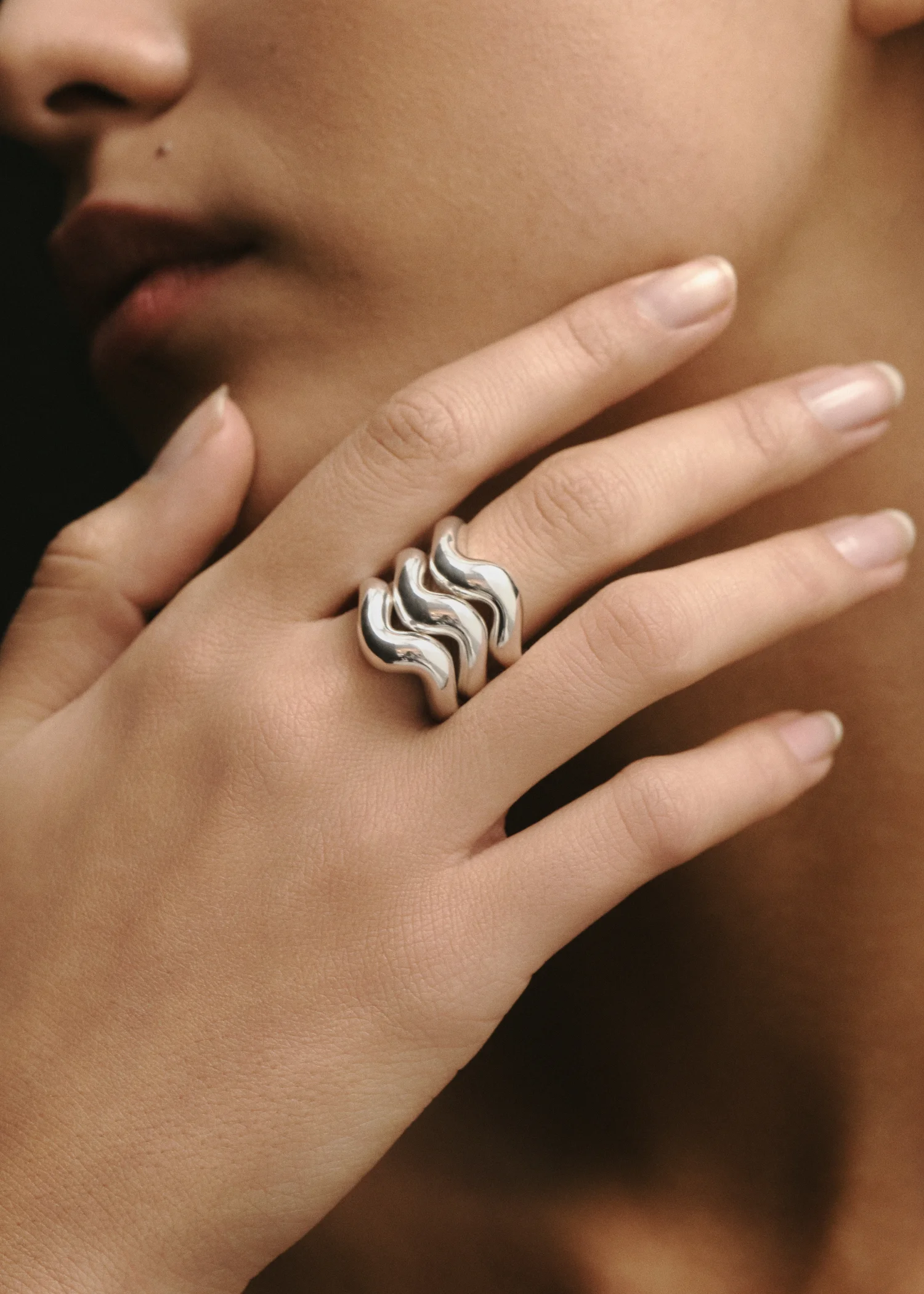 A set featuring three Aurea` Polished Rings. Each ring features a curvy, organic shape and a polished finish. Exclusively priced as a set.