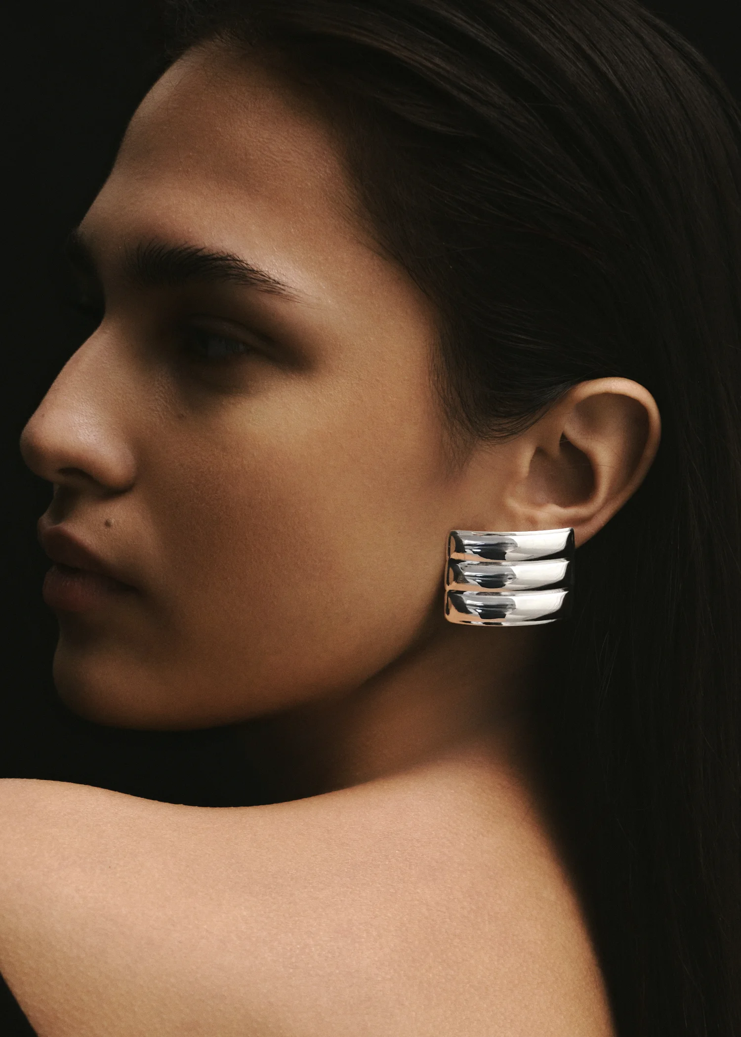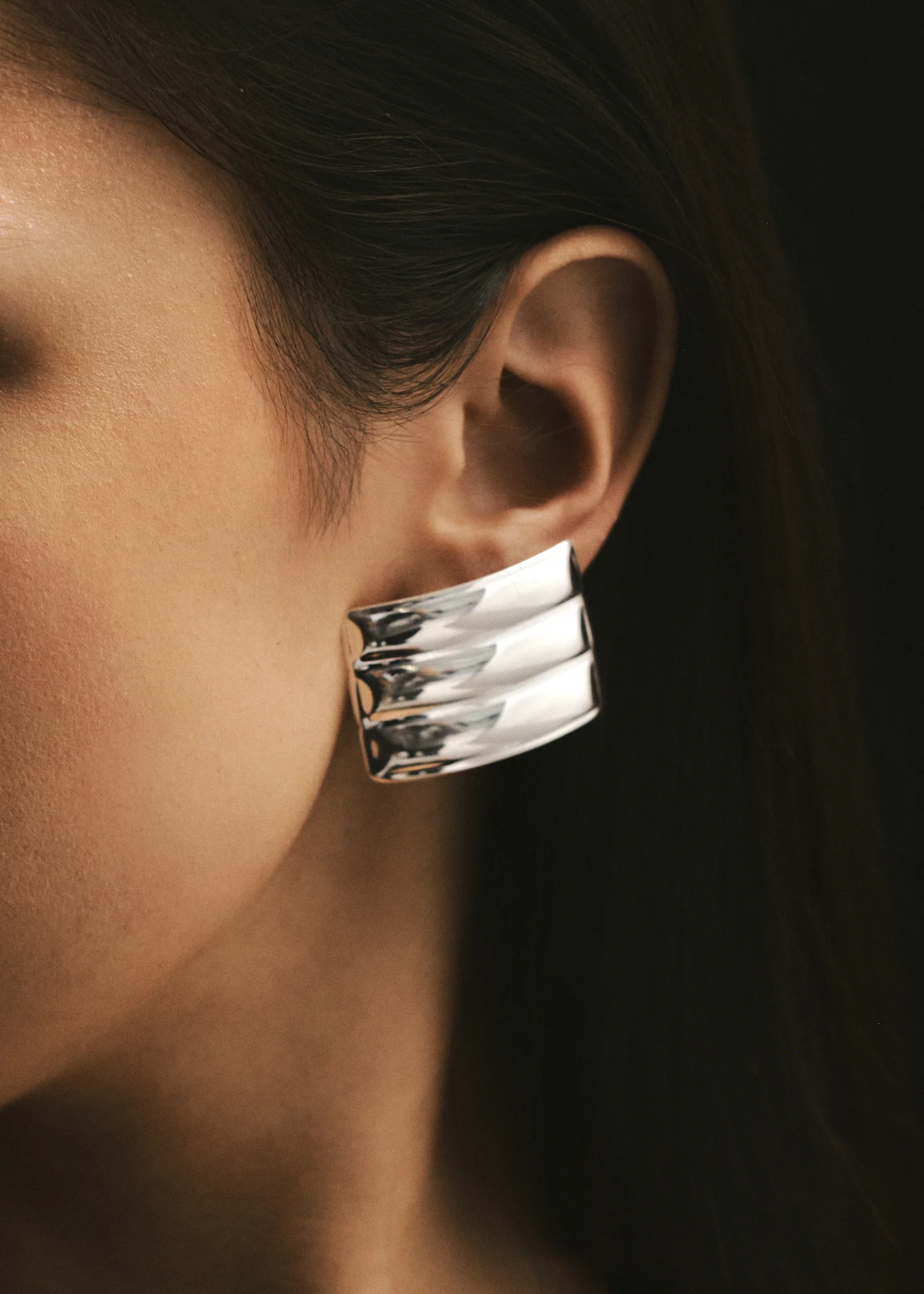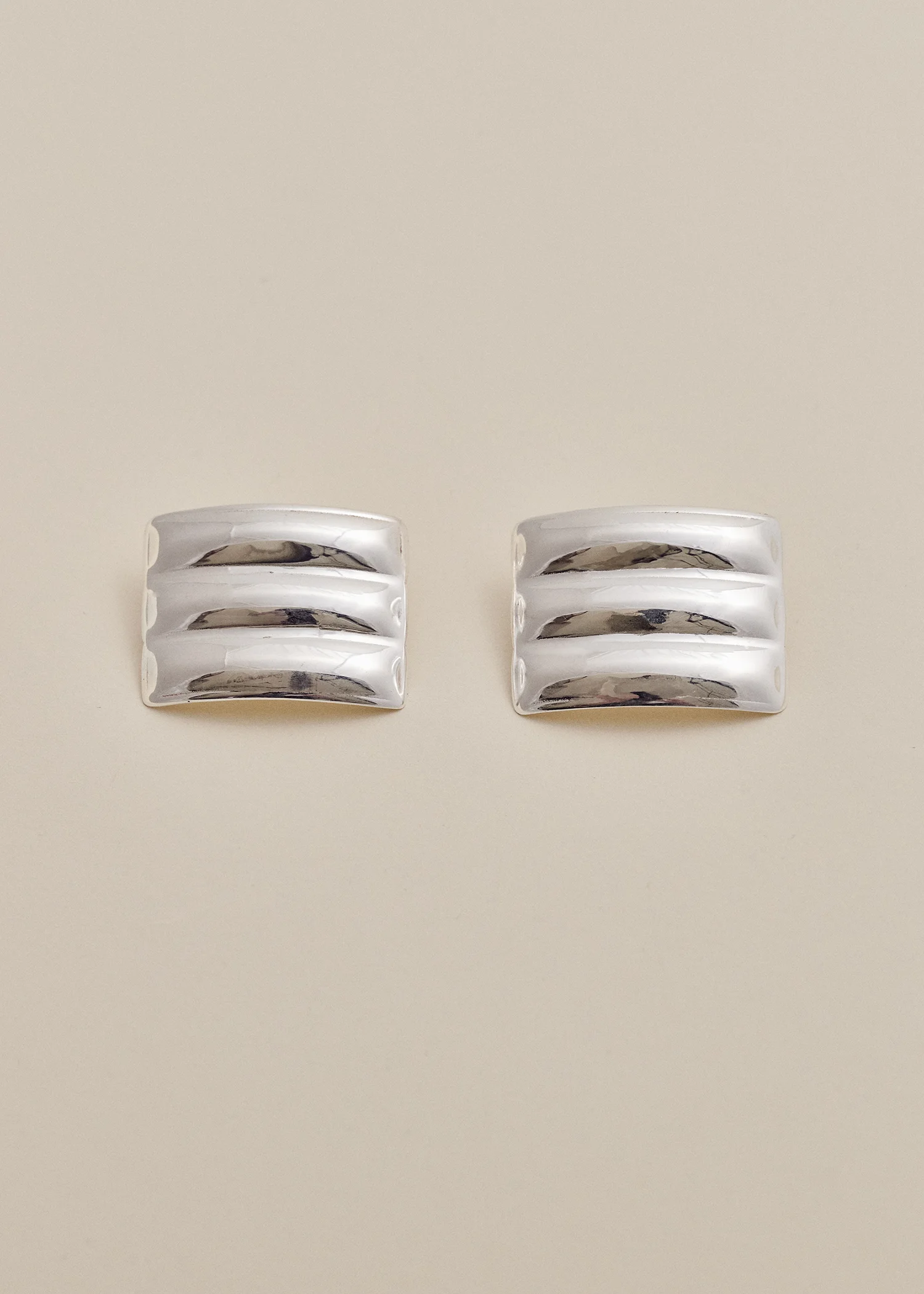 Introducing the Cesi Earrings, a pair of sleek earrings with a subtle curve and three distinct ribs.