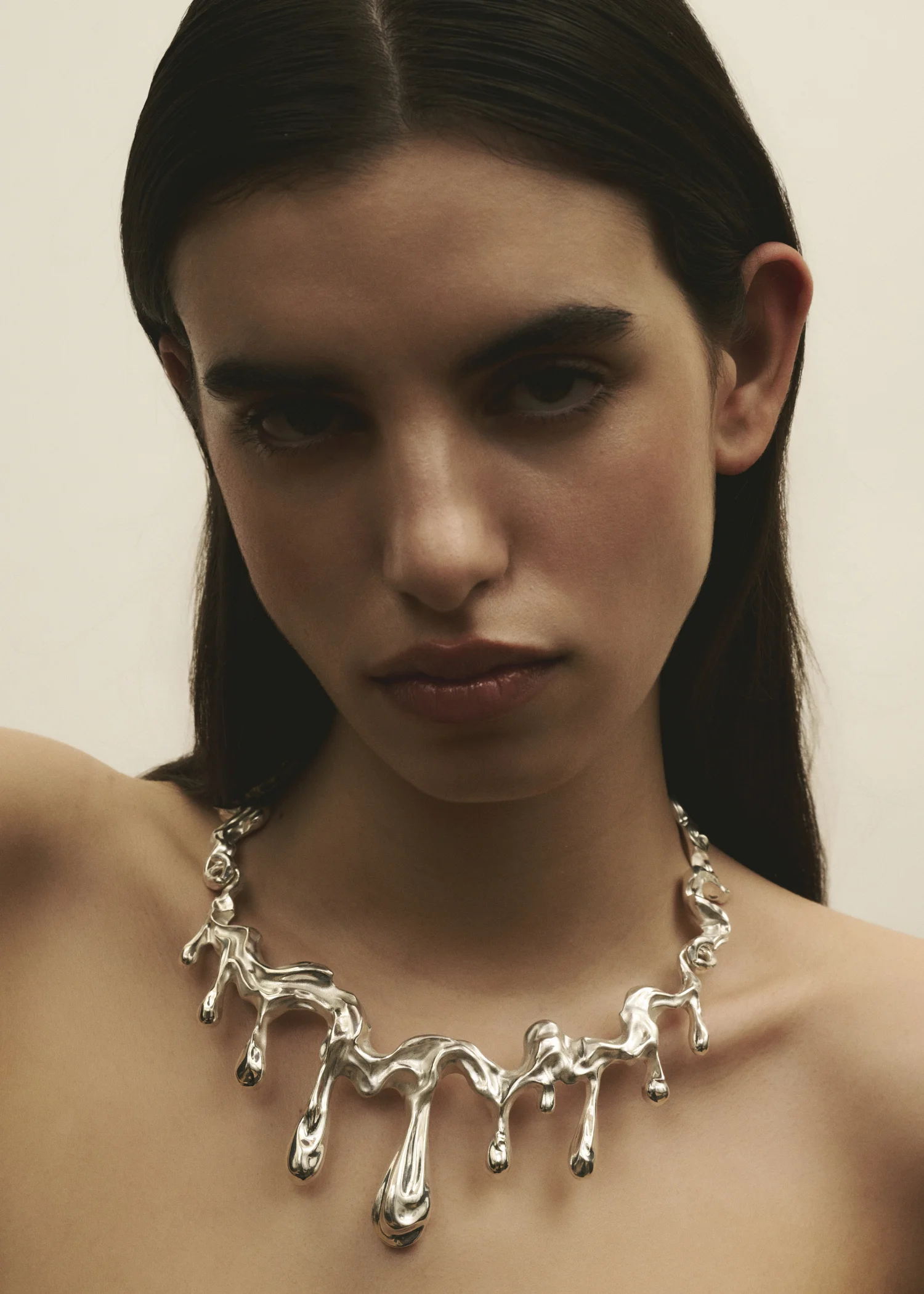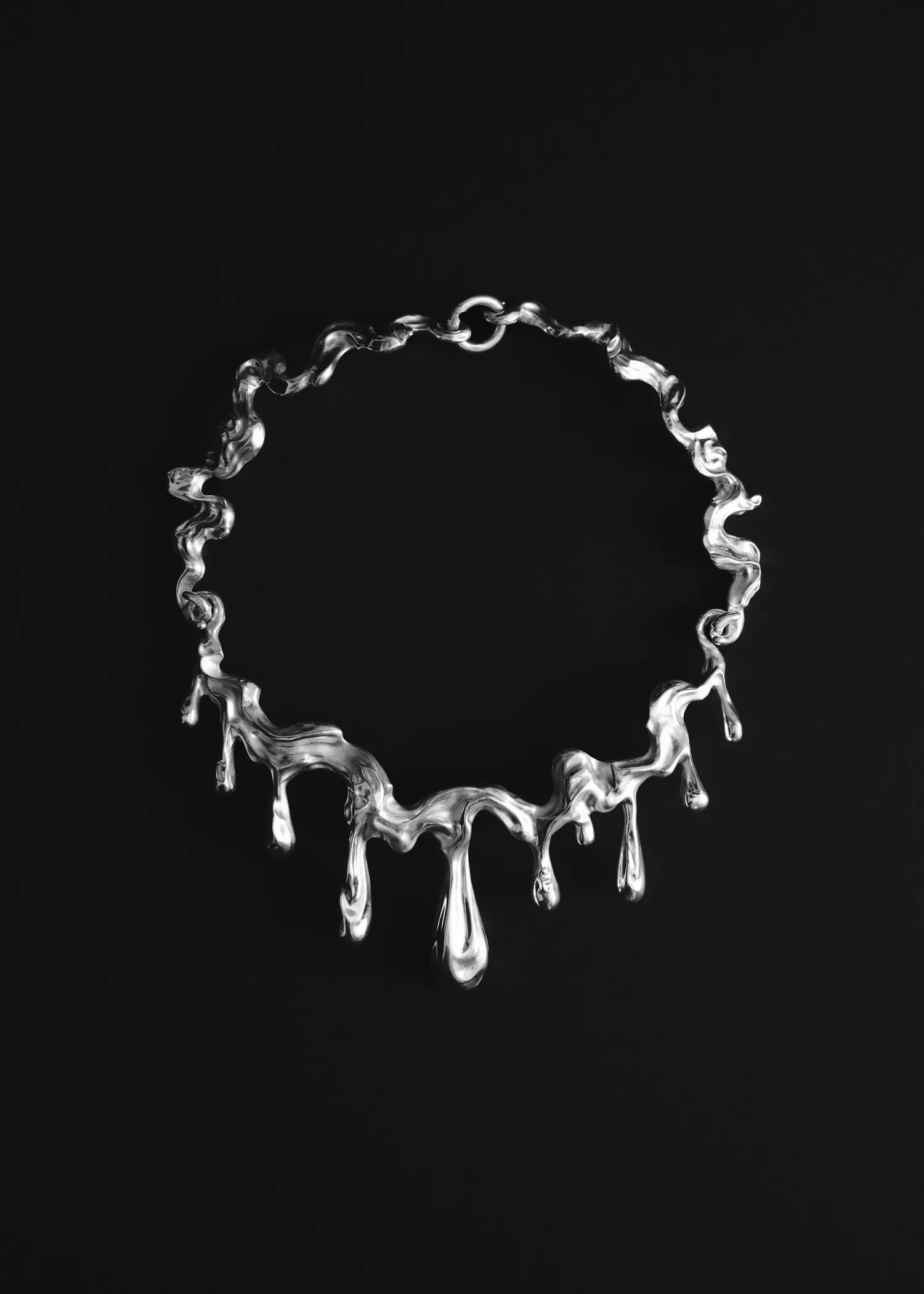 The Delenio Choker is a solid 925 silver creation capturing the metamorphosis of silver, delicately poised at the threshold between its solid form and its molten state.