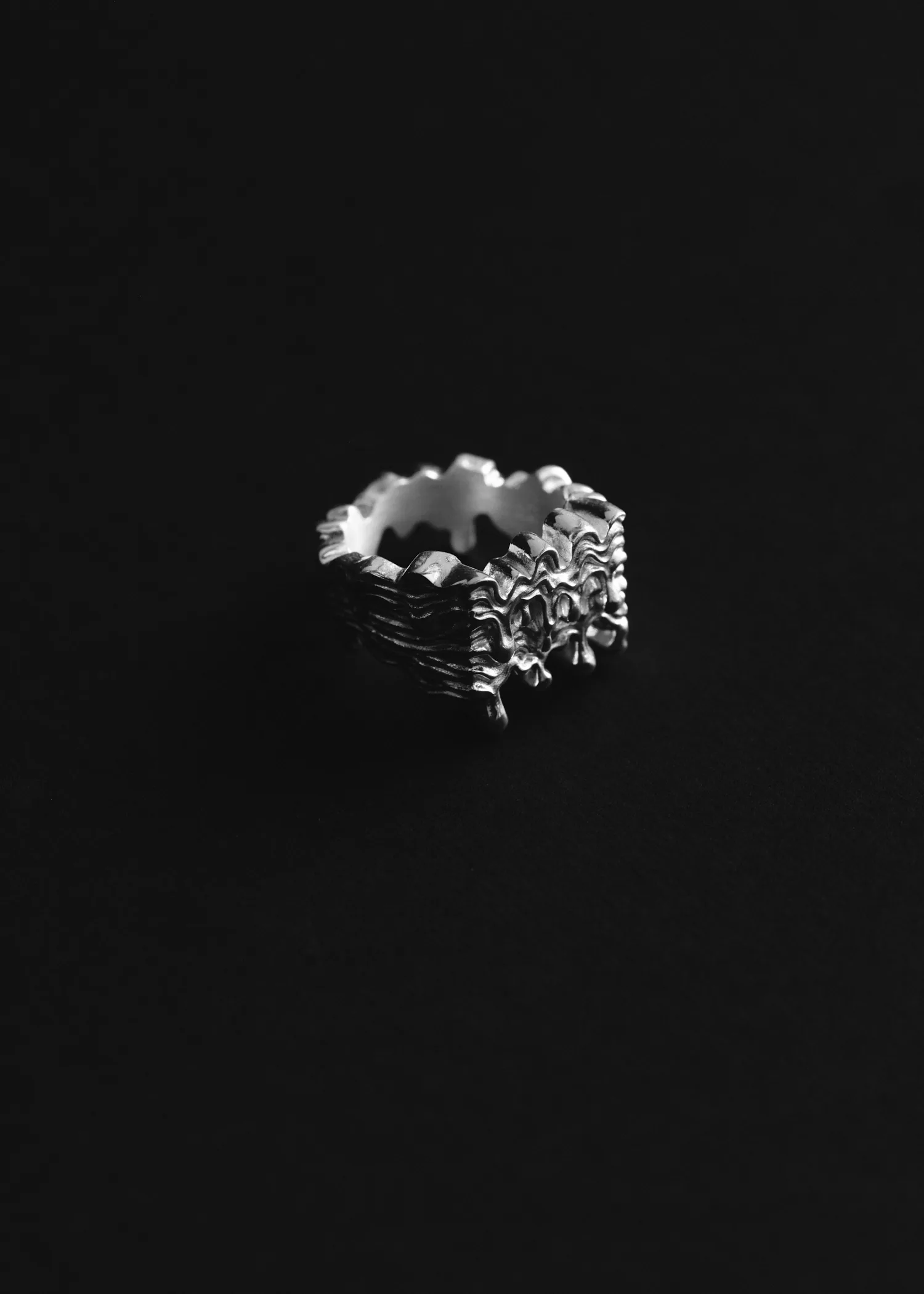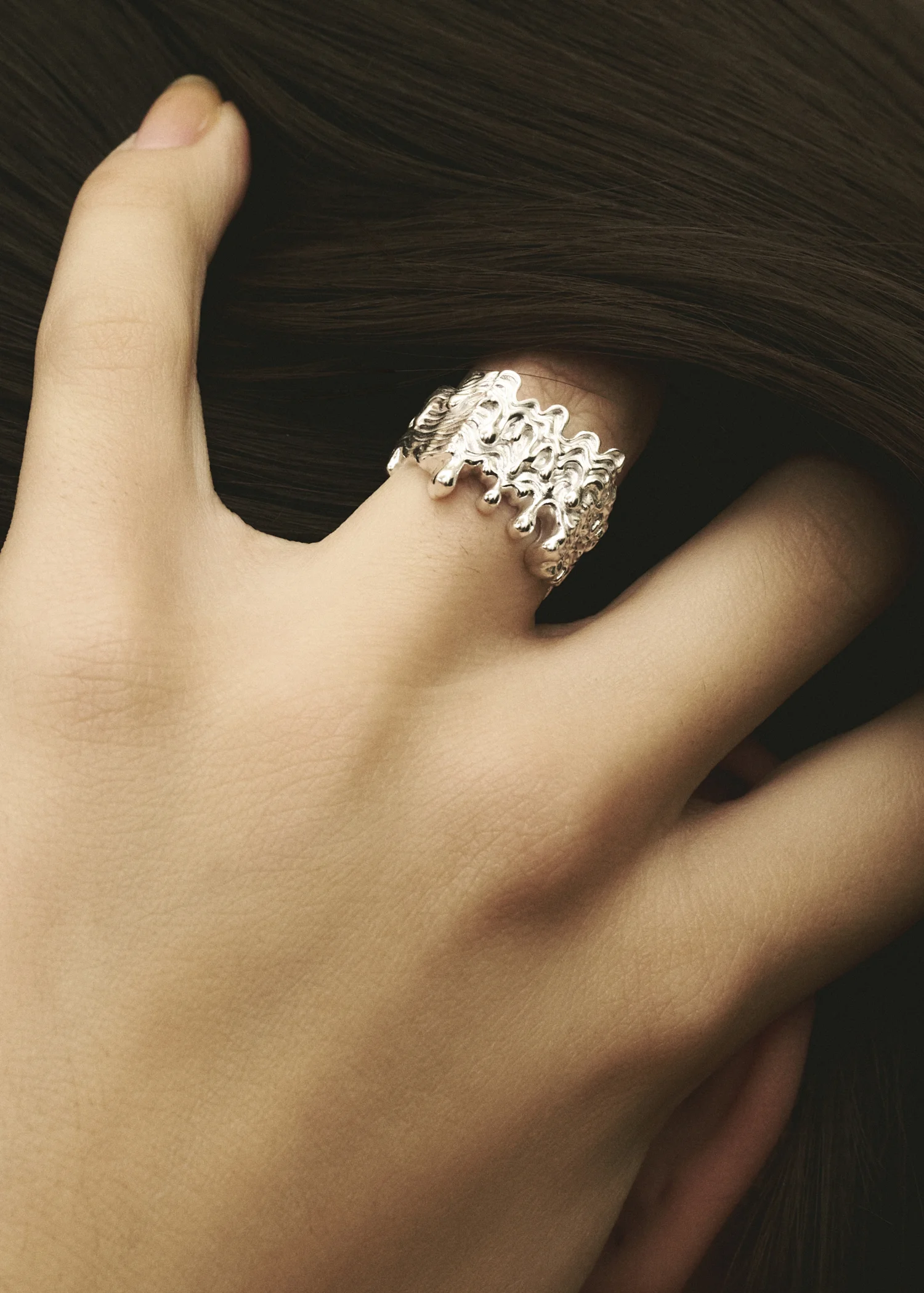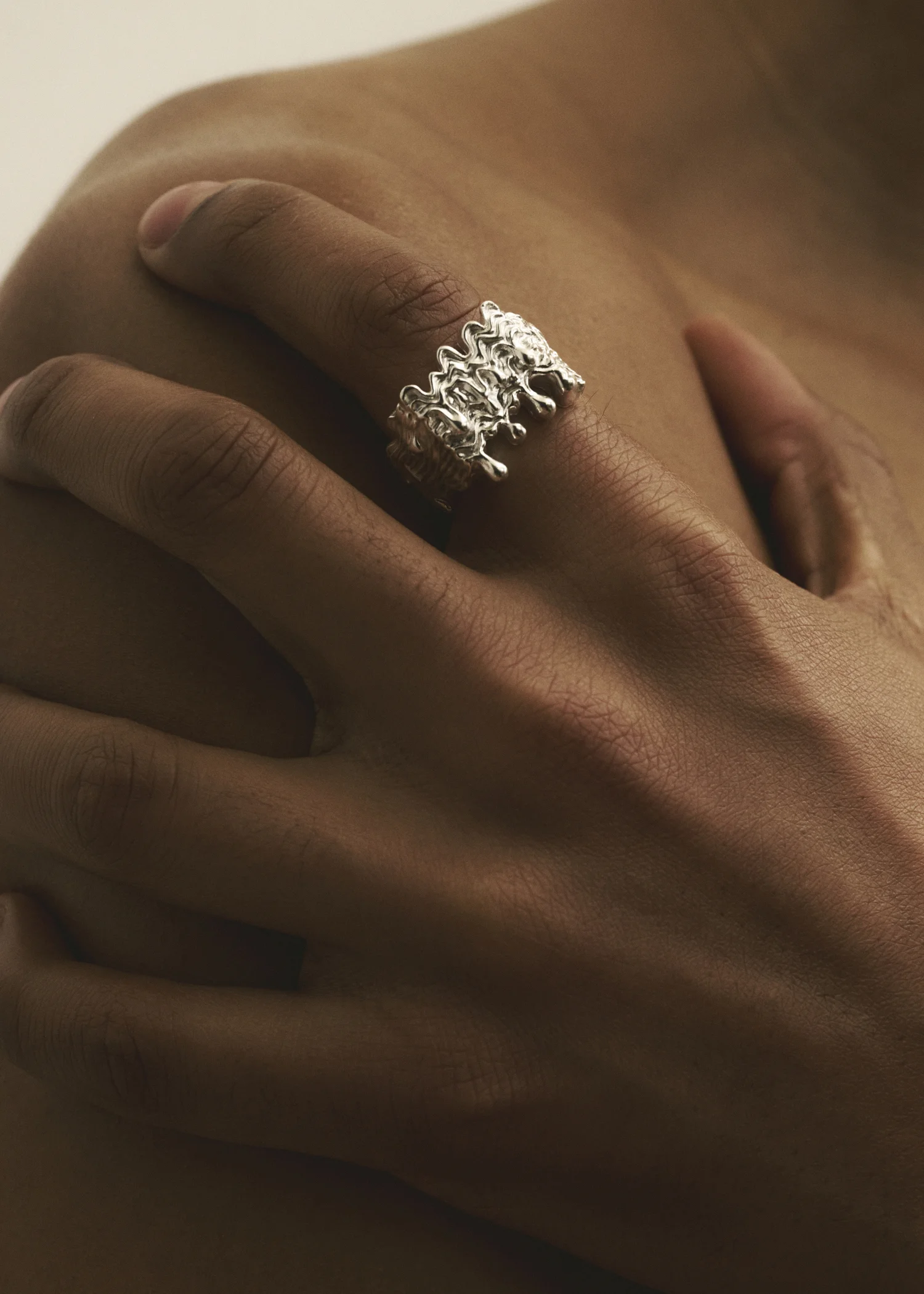 Introducing the Delenio Ring, an experimental transformation of our classic Unda Ring. Crafted by wax melting techniques and 3D manipulation to achieve its surreal and fluid appearance.