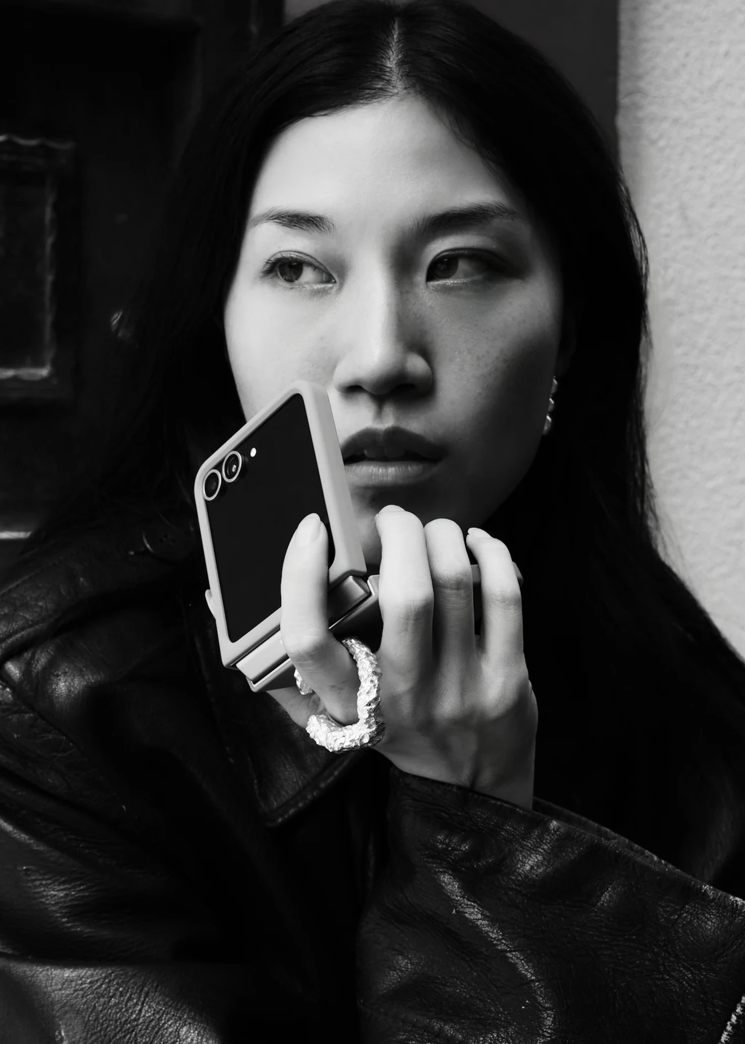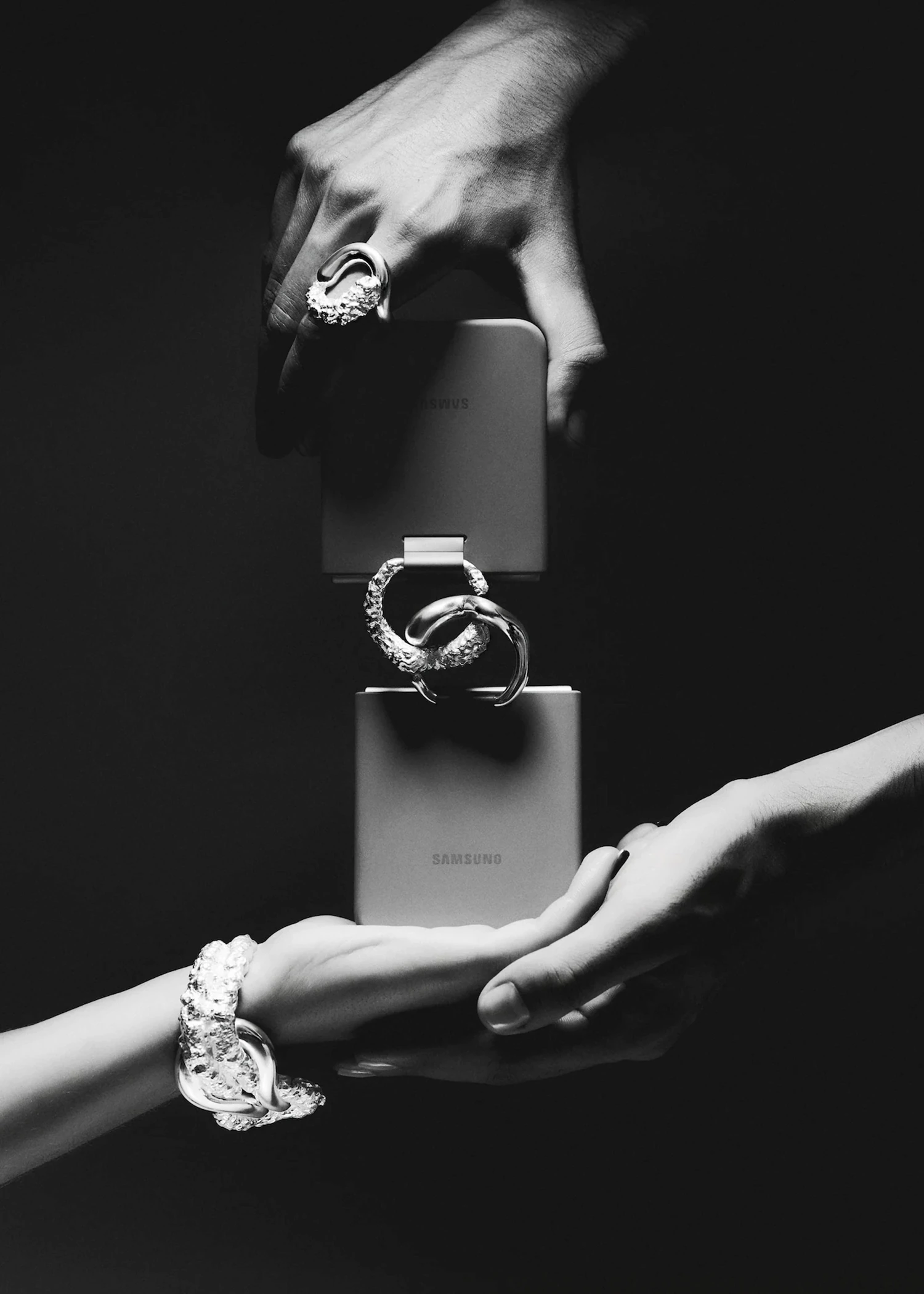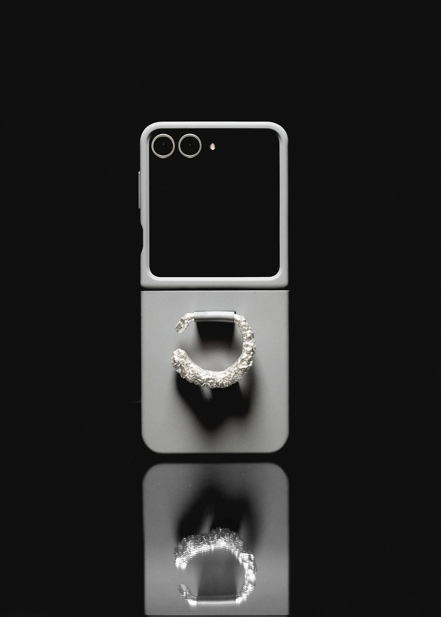 The Inyeon Case for the Samsung Galaxy Z Flip6, part of the Samsung x Louis Abel collaboration, features handcrafted silver rings designed to connect with one another, symbolizing lasting bonds.