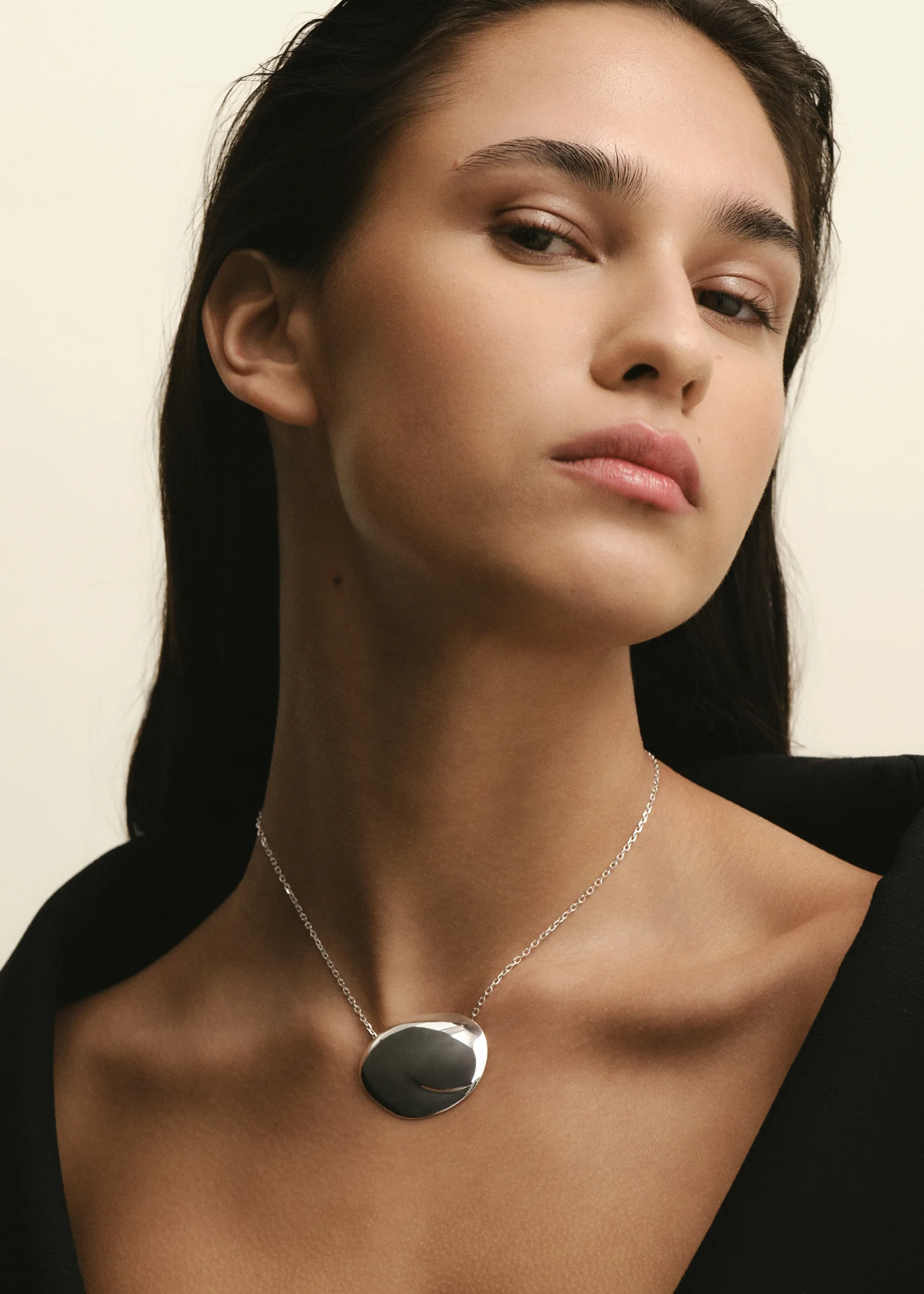The Ovu Chain Necklace is inspired by beach rocks polished by the ocean. The pendant’s distinct crease adds a unique touch.