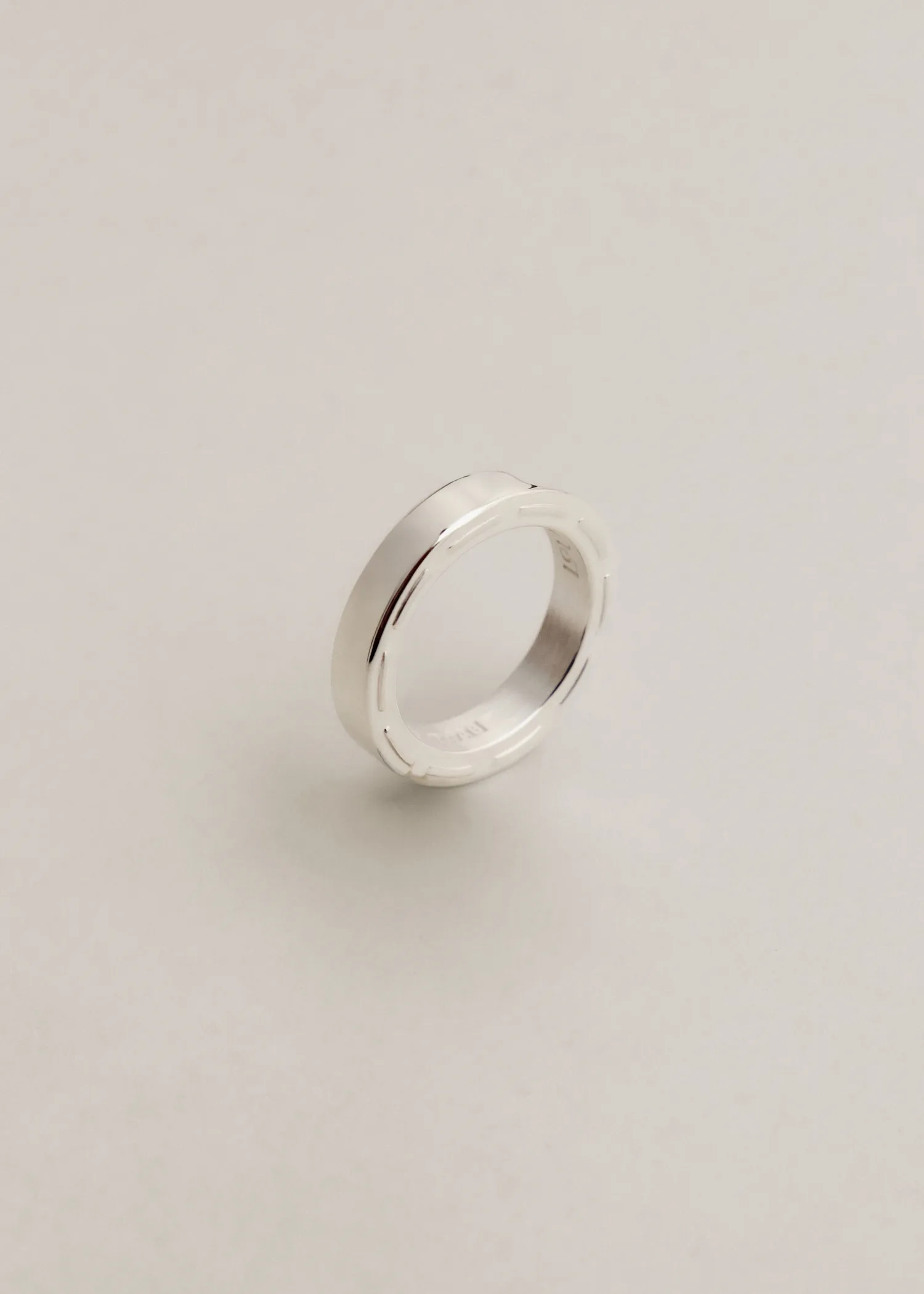 As part of our Suo series, we are now introducing a band ring with a subtle twist, paying homage to Louis Abel’s hometown and its textile heritage. The ring features stitch-like details along the sides and a highly polished surface.
