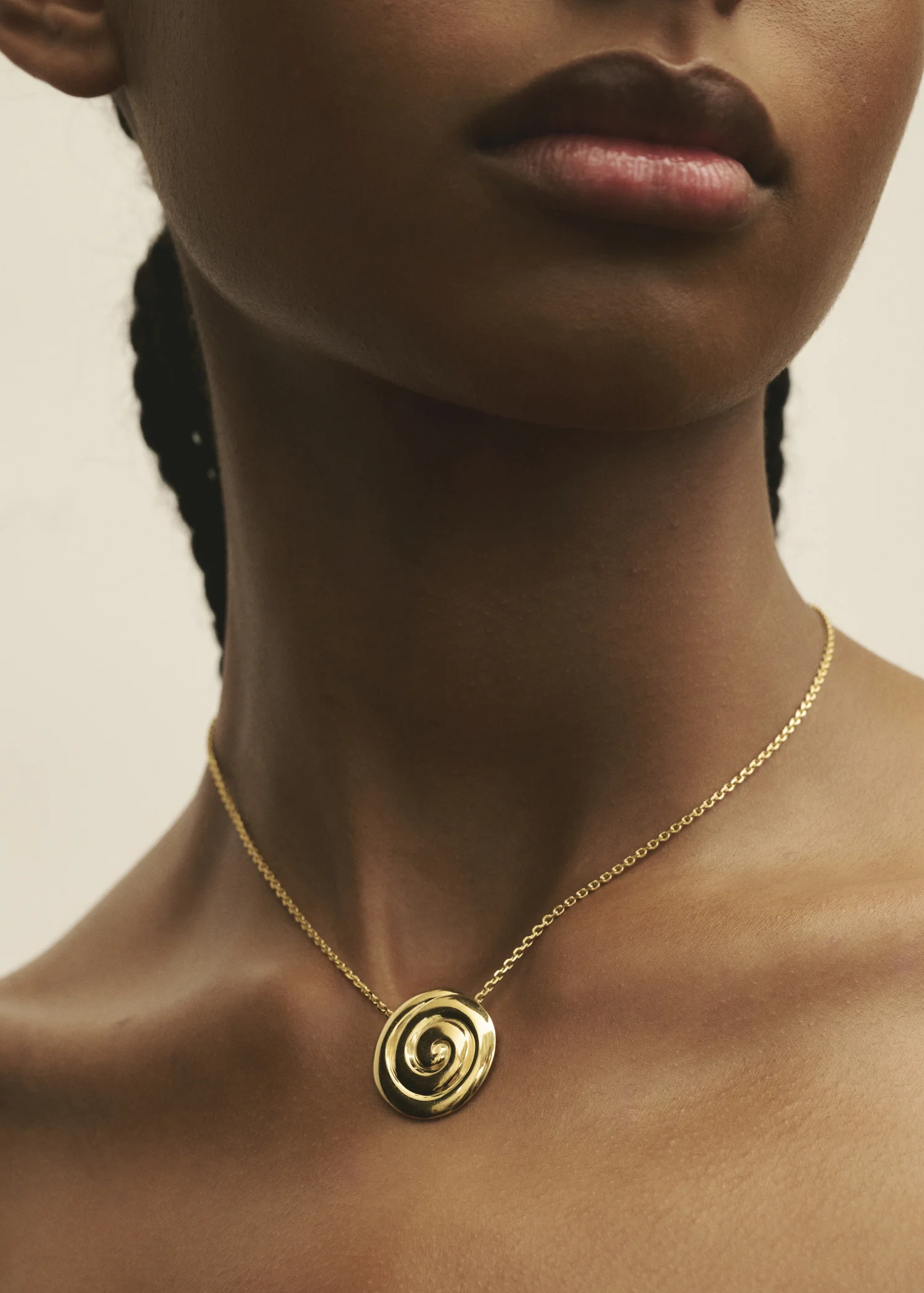 The Uzu Mid necklace is inspired by the swirling shape of whirlpools. This necklace ships with both a stain band and a chain with an adjustable length between 36cm-40cm.