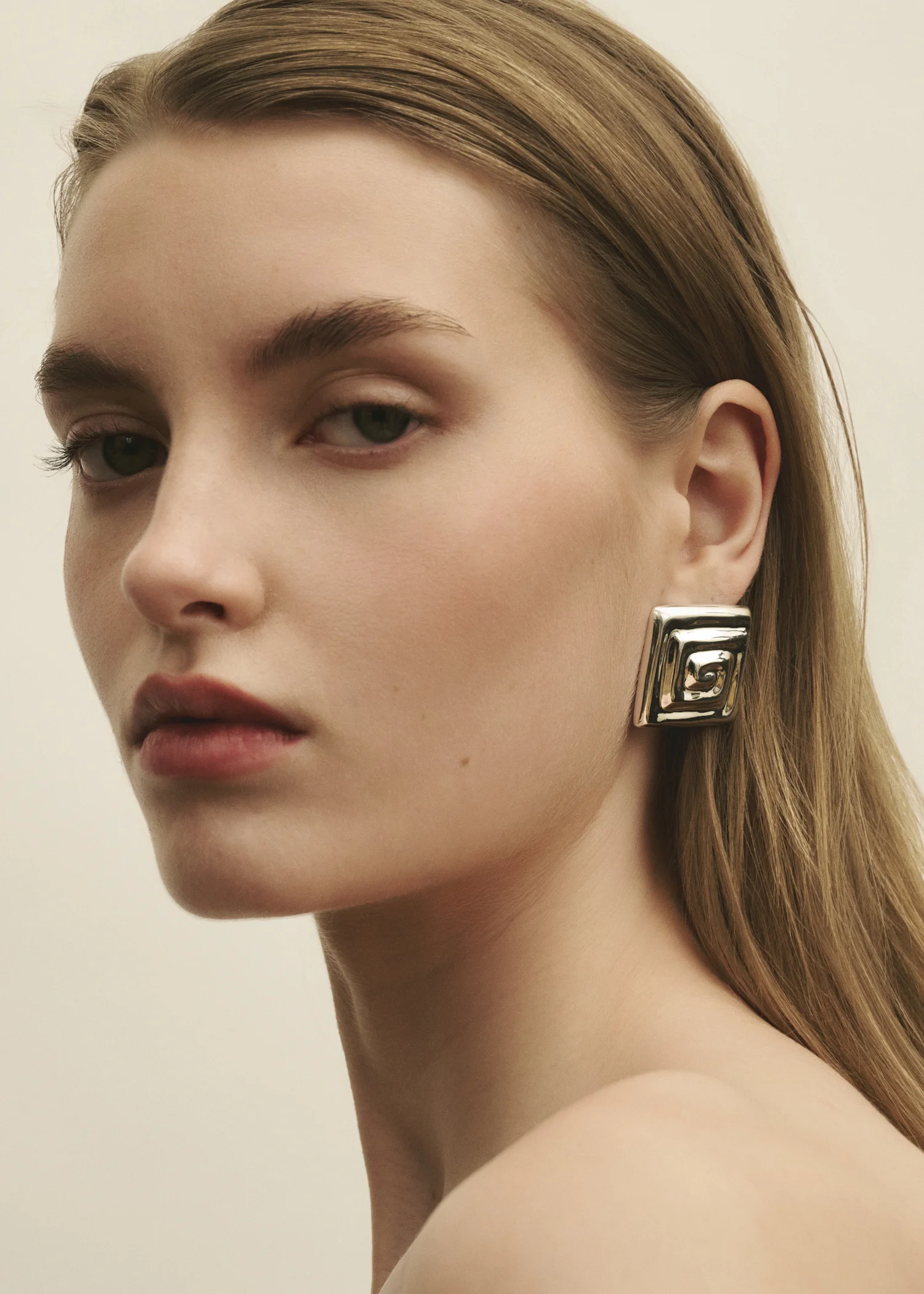 Uzu Square Earrings – Inspired by the swirling shape of whirlpools, this captivating body of twirling water is formed by flowing water meeting a barrier or obstacle that causes this twisting, powerful phenomena.